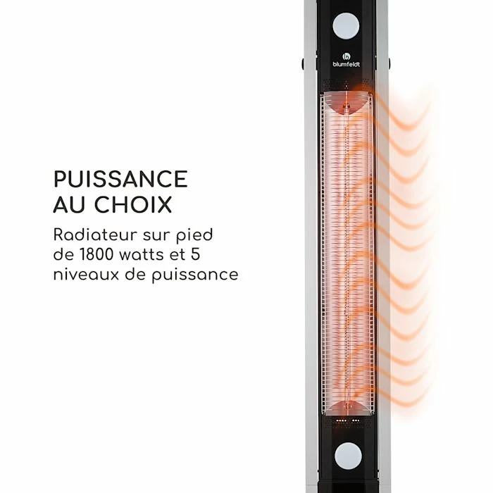 Pour des moments agréablement chauds : le radiateur de terrasse Blumfeldt Aspire donne une ambiance douce et chaleureuse aux coins salons sur la terrasse ou le balcon, dans le jardin ou la salle de fête au sous-sol
