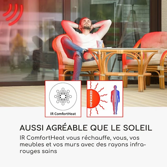 - Chaleur infrarouge: émission de la chaleur ciblée sur les personnes et les objets, plutôt que de réchauffer l’air ambiant