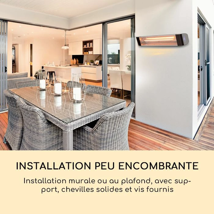 - Elément chauffant avec technologie carbone: élément chauffant infrarouge pratique et efficace utilisant la technologie ComfortHeat IR pour une puissance allant jusqu’à 2400 W