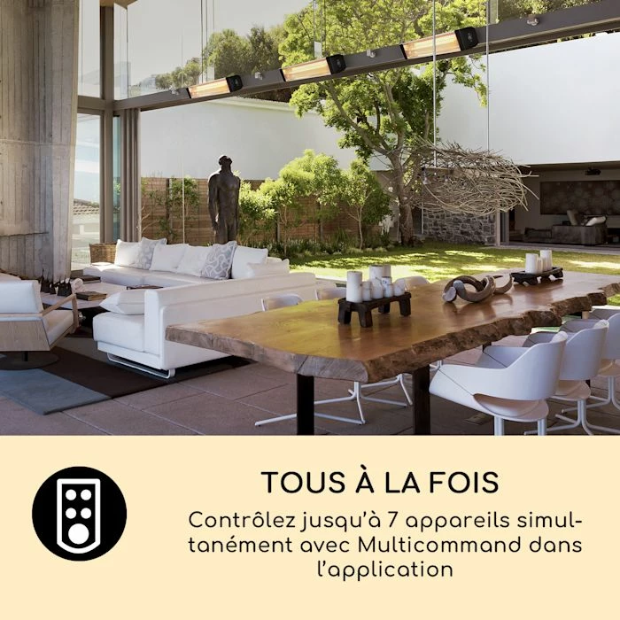 - Tout en un: commande jusqu’à 7 appareils simultanément via la fonction Multicommand de l’application – idéal pour les cafés ou les terrasses en plein air