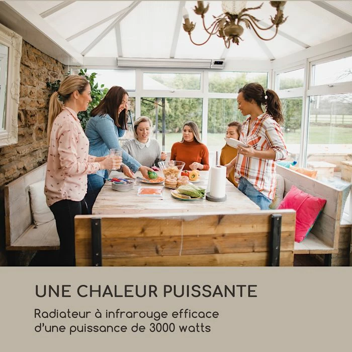 - Une chaleur puissante sur la terrasse : chauffage à infrarouge efficace avec une puissance de 3000 W