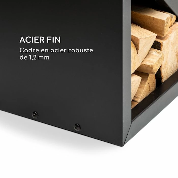 Qui n’aime pas s’asseoir près d’un feu de cheminée crépitant et qui réchauffe ? Avec le blumfeldt Firebowl Kindlewood L Black, tu peux te détendre en tout confort : Les bûches pour le feu sont à portée de main. Parce que tu es littéralement assis dessus. Le meuble de rangement pour le bois ne t’offre pas seulement une option de rangement moderne et peu encombrante, il sert également de banc confortable. Il impressionne également par son magnifique design puriste fait d’acier et de bambou attrayants. Son aspect luxueux n’est complété que lorsque tu empiles les bûches à l’intérieur du banc, car le bois s’harmonise parfaitement avec les matériaux. Les séparateurs diagonaux complètent le look exclusif et t’aident à empiler le bois de chauffage. Ils garantissent également que votre tas de bois ne s’effondrera pas dès que tu sortiras une bûche.