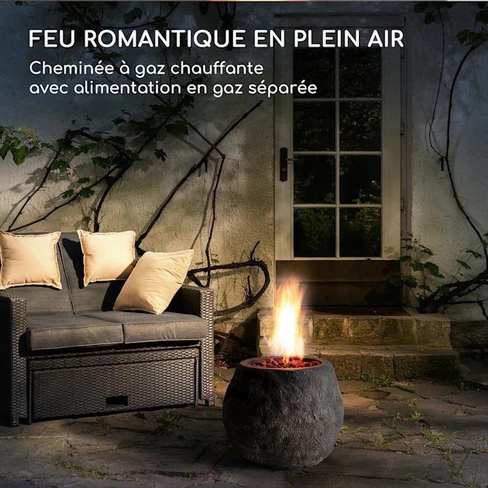 - Romantisme ardent en plein air : foyer à gaz chauffant avec alimentation en gaz séparée