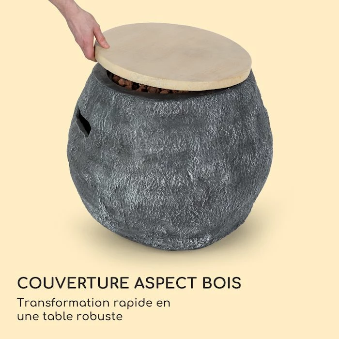 Avec le foyer à gaz Andros de blumfeldt, vous pouvez installer dans votre jardin une vasquemerveilleusement romantique qui se transforme en un clin d’œil en une table de jardin rustique. En contrepartie, le robuste chauffage à gaz est équipé d’un couvercle assorti, résistant et d’aspect bois. Si vous enlevez le couvercle qui correspond exactement, vous découvrez un foyer dans lequel des flammes chaudes jaillissent de pierres de lave naturelles.