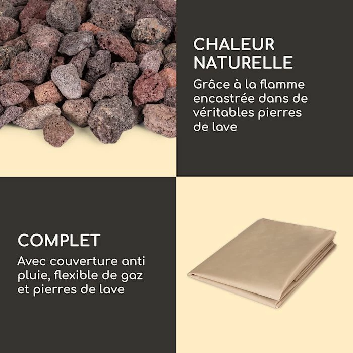 - Tout est inclus : y compris la couverture de pluie, le tuyau de gaz et les pierres de lave