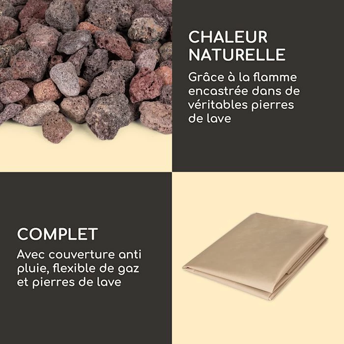 - Tout est inclus : y compris la couverture de pluie, le tuyau de gaz et les pierres de lave