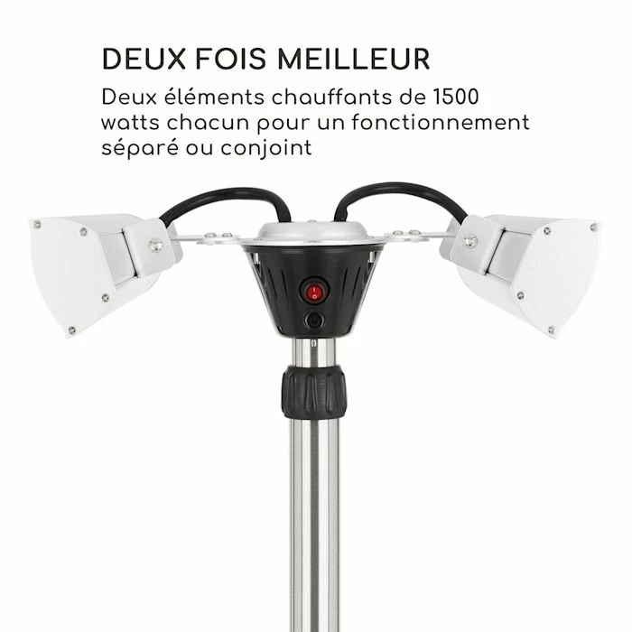- Réglable : pied télescopique et éléments chauffants inclinables pour une orientation personnalisée