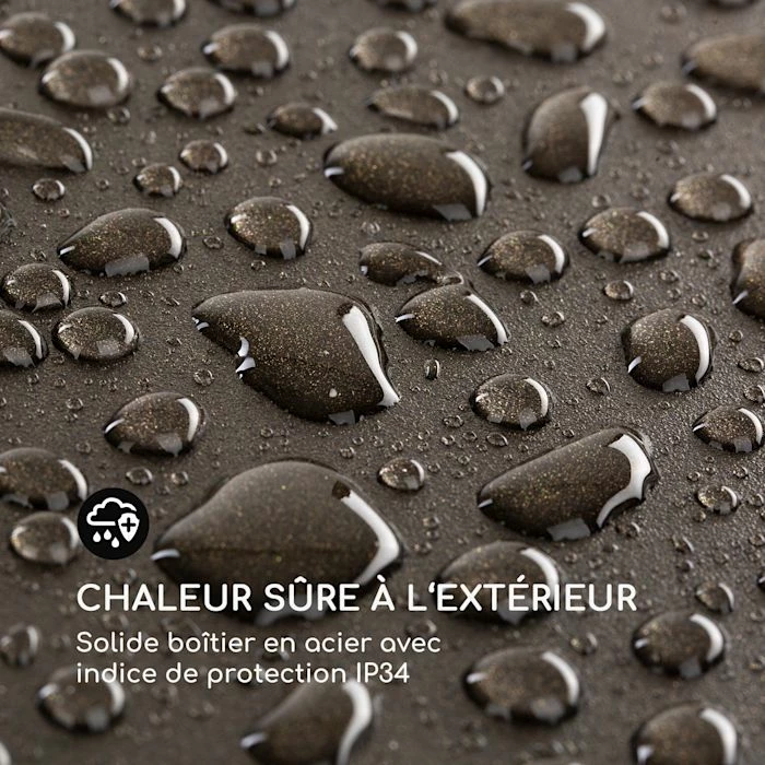 - Une chaleur sûre à l’extérieur : solide boîtier en acier avec indice de protection IP34