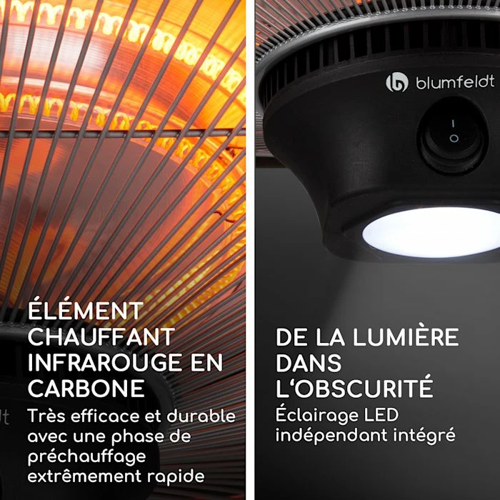 - Eléments chauffants infrarouges en carbone : très efficaces et durables avec préchauffage extrêmement rapide