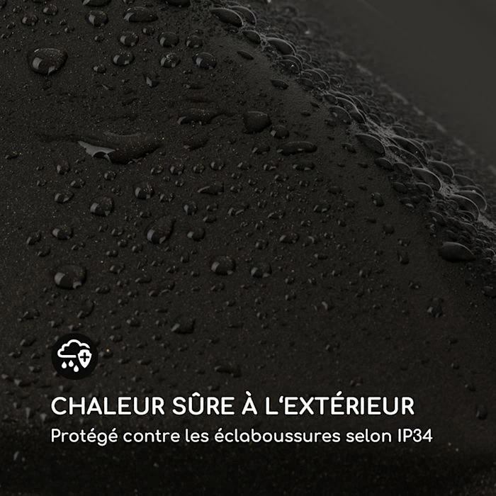 - Chaleur sûre à l’extérieur : protection contre les éclaboussures avec IP24