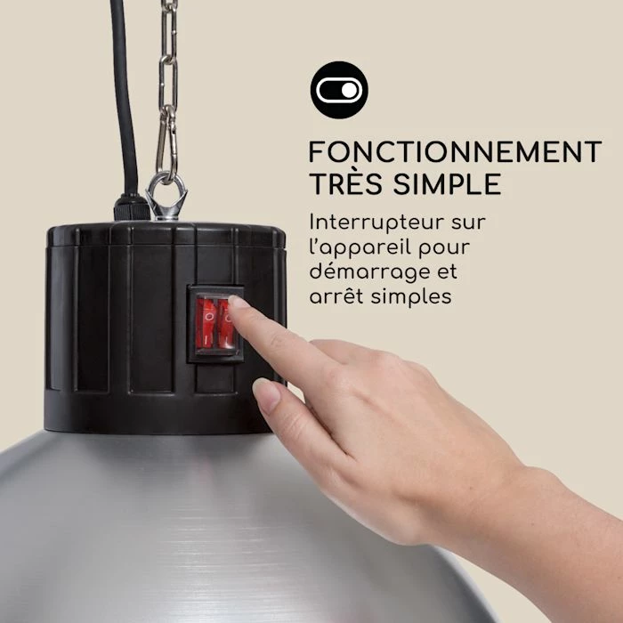 - Elément chauffant au carbone : trÚs efficace avec préchauffage ultra rapide et réflecteur en aluminium