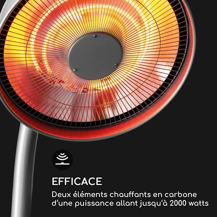 - Efficace : deux éléments chauffants en carbone d’une puissance allant jusqu’à 2000 watts