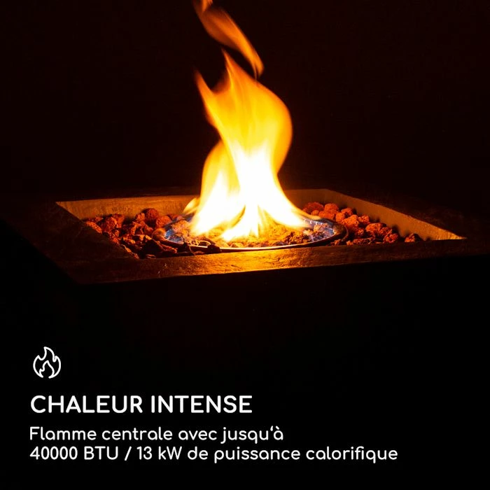 - Chaleur intense : flamme centrale avec jusqu’Ă 40.000 BTU / 13 kW de puissance thermique