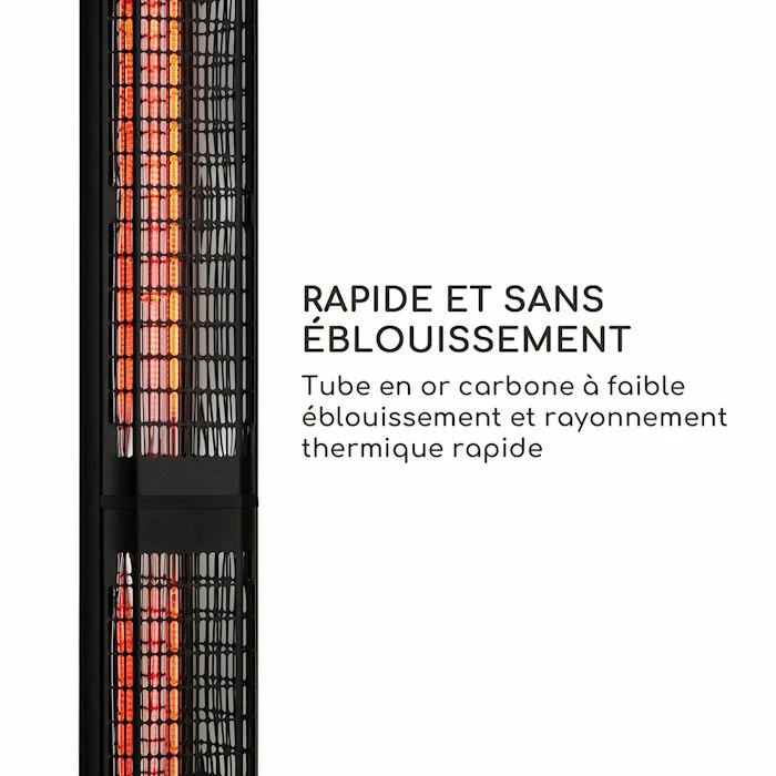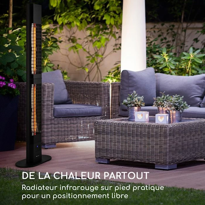 - Chaleur partout : radiateur infrarouge sur pied pratique à positionner librement