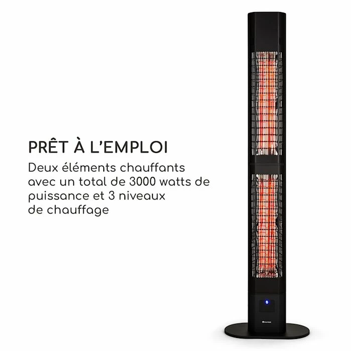 - Prêt à l’emploi : deux éléments chauffants d’une puissance totale de 3000 watts et 3 niveaux de chauffage
