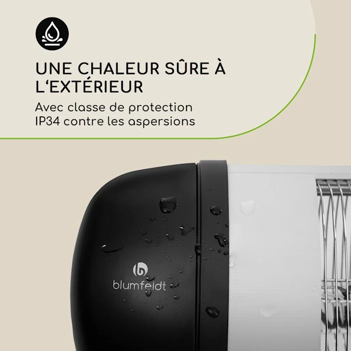 - De la chaleur à l’extérieur en toute sécurité : avec classe de protection IP34 contre les aspersions