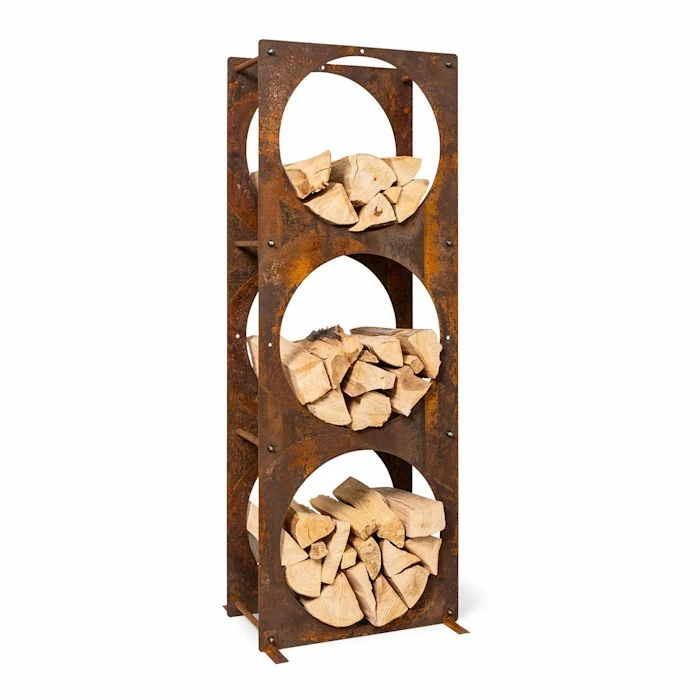 Qui n’aime pas s’asseoir près d’un feu de cheminée vivant, crépitant et chaleureux ? Avec le range-bûches Trio Circulo de blumfeldt, vous pouvez vous détendre en tout confort : Les bûches pour alimenter le feu sont à portée de main. Le range-bûches ne vous offre pas seulement une option de rangement moderne et peu encombrante, mais c’est également un régal pour les yeux. Il se caractérise par son design magnifique et puriste. Son aspect rustique mais moderne n’est complété que lorsque vous empilez les bûches dans les étagères circulaires, car le bois s’harmonise parfaitement avec l’acier.