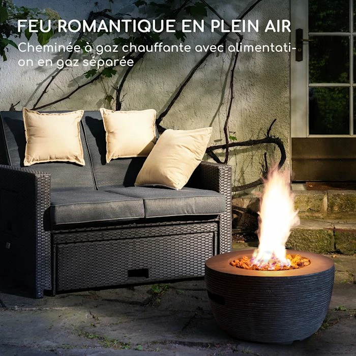 - Romantisme ardent en plein air : foyer à gaz chauffant avec alimentation en gaz séparée