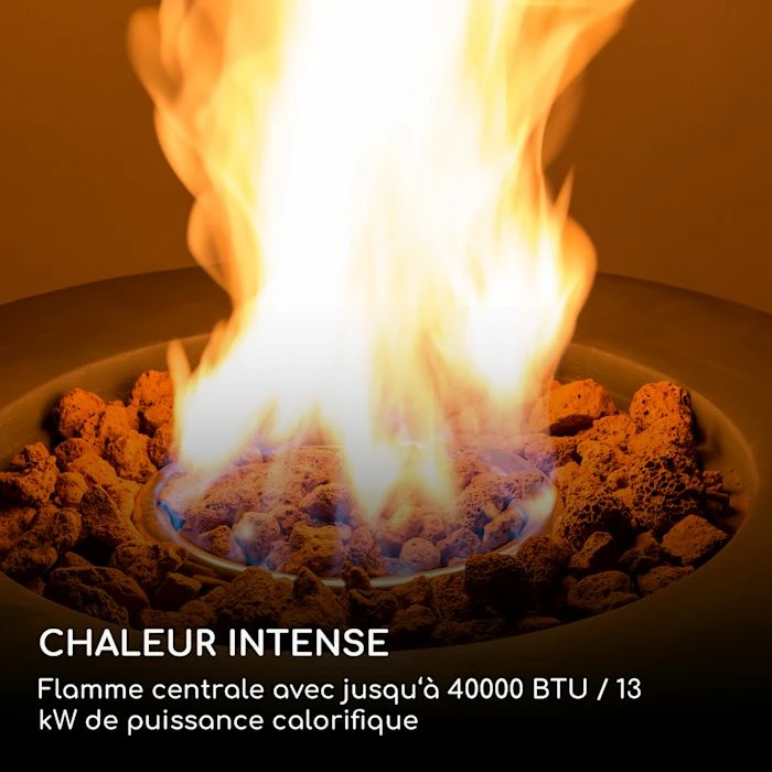 - Chaleur intense : flamme centrale avec jusqu’Ă 40.000 BTU / 13 kW de puissance thermique