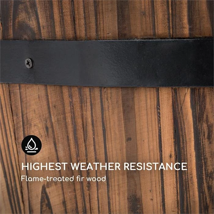 - Résistance élevée aux intempéries : bois de sapin vieilli à la flamme