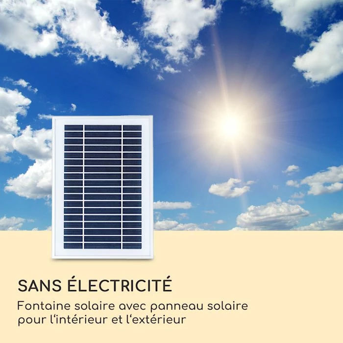 - Sans électricité : Fontaine solaire avec panneau solaire pour l’intérieur et l’extérieur