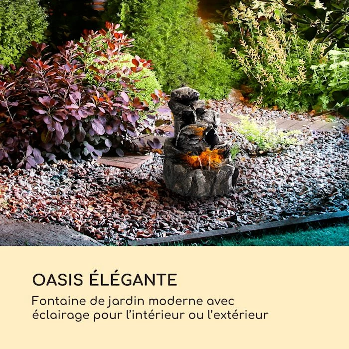 - Une oasis Ă©lĂ©gante : fontaine de jardin moderne avec Ă©clairage pour l’intĂ©rieur ou l’extĂ©rieur