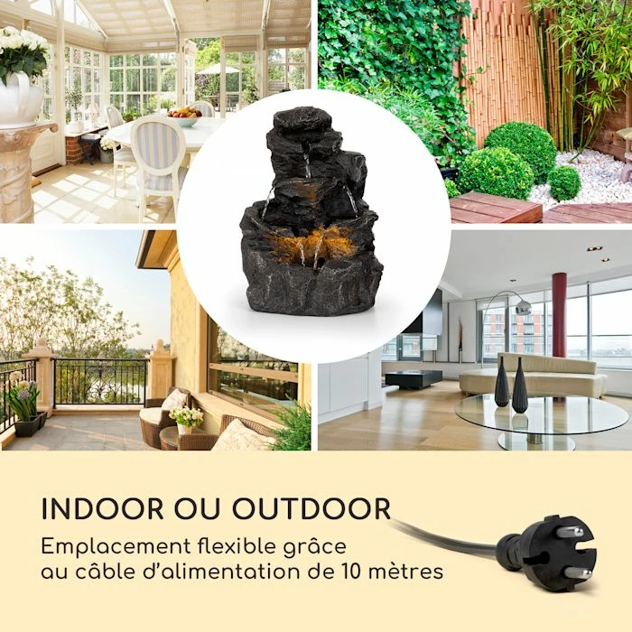 La fontaine de jardin Blumfeldt Rocky Waters est trĂšs dĂ©corative avec son jeu d’eau et de lumiĂšre relaxant et son design moderne et sobre et embellira tout jardin ou intĂ©rieur.
