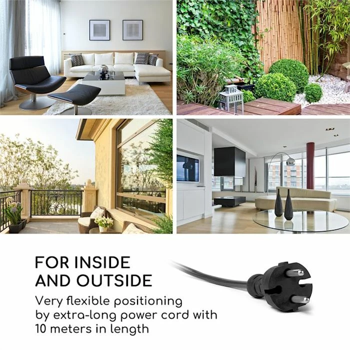 - Pour l’intérieur ou l’extérieur : particulièrement flexible avec son câble extra long