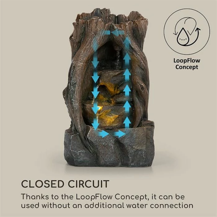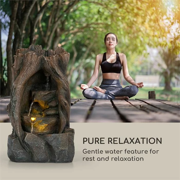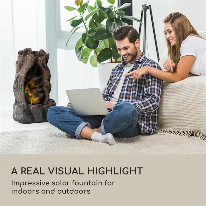 La fontaine solaire Blumfeldt Magic Tree convainc par son impressionnante forme en aspect bois, son jeu d’eau esthétique et son éclairage LED d’ambiance.