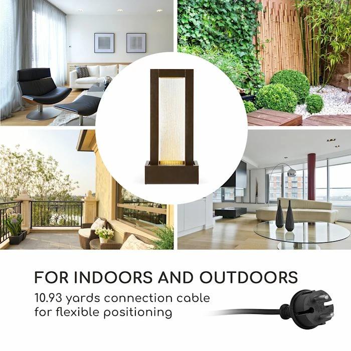 Quand le ciel ouvre les vannes : le monde mystique de l’eau de la fontaine Blumfeldt Skyriver transforme votre jardin, terrasse, salon ou jardin d’hiver en espace de loisirs pour les yeux et les oreilles – combinaison enchanteresse de murmures d’eau qui s’écoule, de formes sobres et de reflets lumineux et étincelants.