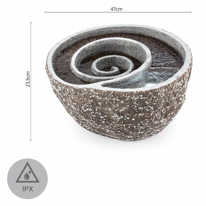 - Jeu d’eau reposant avec surface d’écoulement ondulée en forme de nautile fossilisé