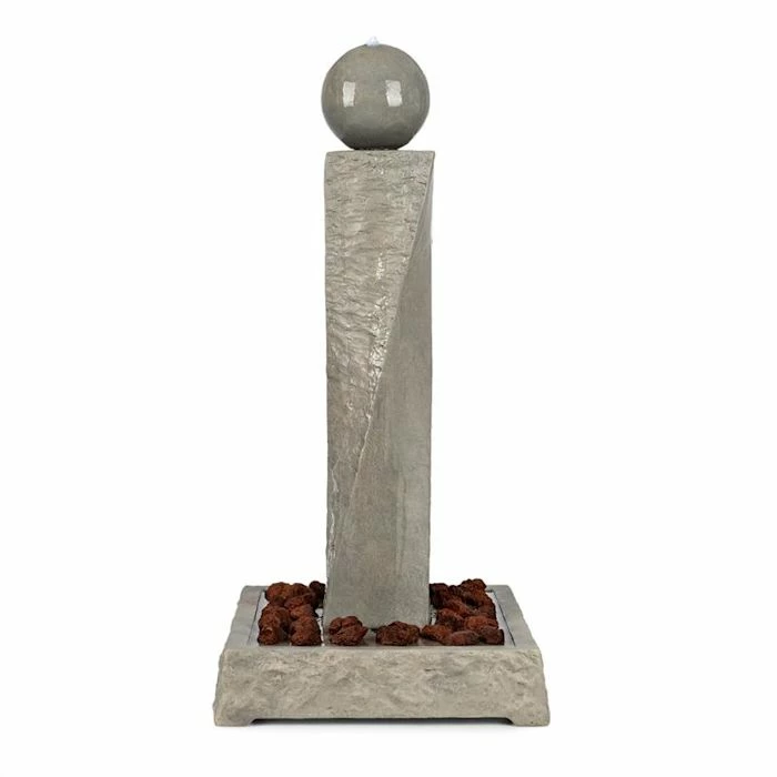 - MatĂ©riaux robustes : finition en ciment et fibre de verre d’aspect ciment moulĂ©, environ 4,5 kg de pierres dĂ©coratives en tuf rouge fournies
