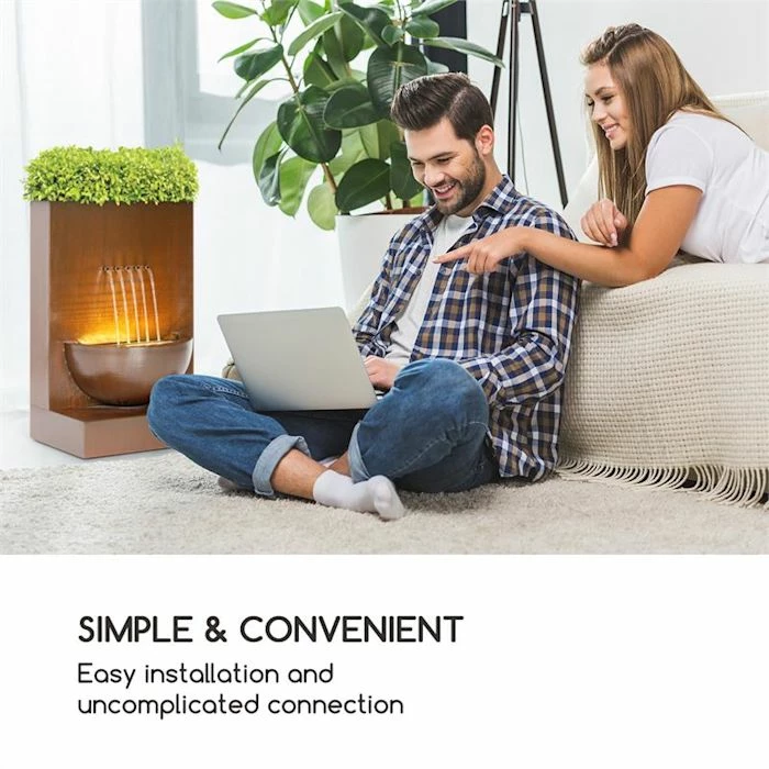 Profitez du vert vivifiant des plantes fraĂźches et du flux relaxant de l’eau : la fontaine de jardin Blumfeldt Windflower pour l’intĂ©rieur et l’extĂ©rieur combine deux Ă©lĂ©ments vivifiants dans une belle composition.