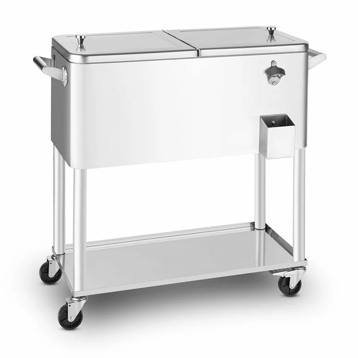 Le chariot-bar Blumfeldt Springbreak garantit la présence de boissons fraîches même en cas de chaleur intense : que ce soit pour les garden parties, les évènements sportifs ou les festivals, le chariot glacière Springbreak offre suffisamment de place pour rafraîchir pendant plusieurs heures les gorges asséchées à l’aide de bières, boissons gazeuses ou jus. Il convient parfaitement aux petites et grandes fêtes privées ou pour un usage professionnel dans le cadre d’un service de restauration.