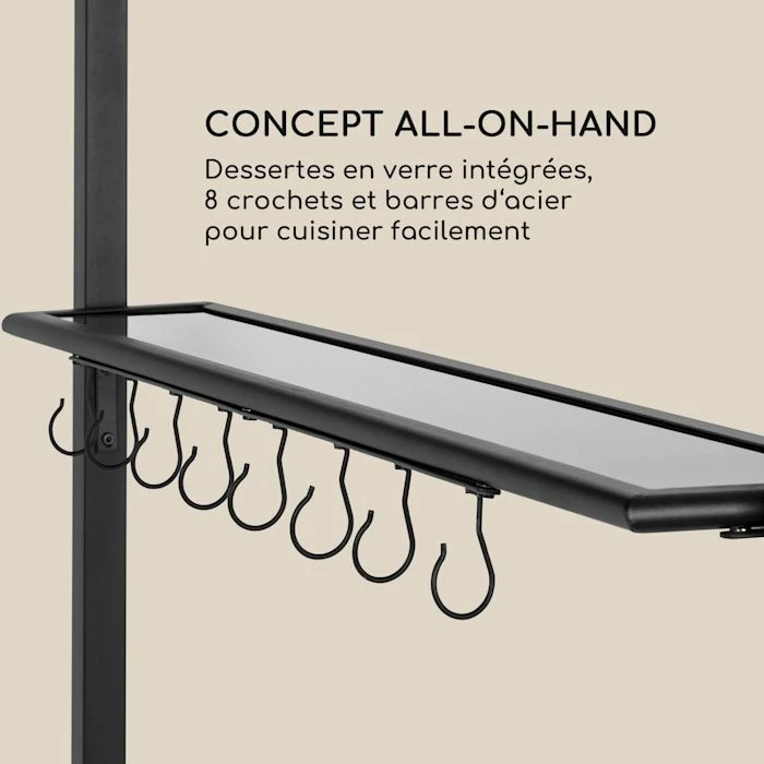 - Concept All-on-Hand : table en verre intégrée, 8 crochets et support en acier pour faciliter votre barbecue