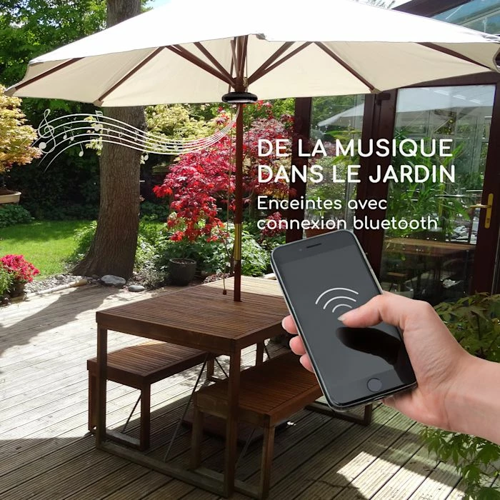 - Musique dans le jardin : haut-parleur avec connexion Bluetooth
