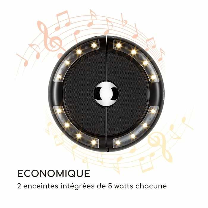 - 2 haut-parleurs Bluetooth (5 watts chacun)