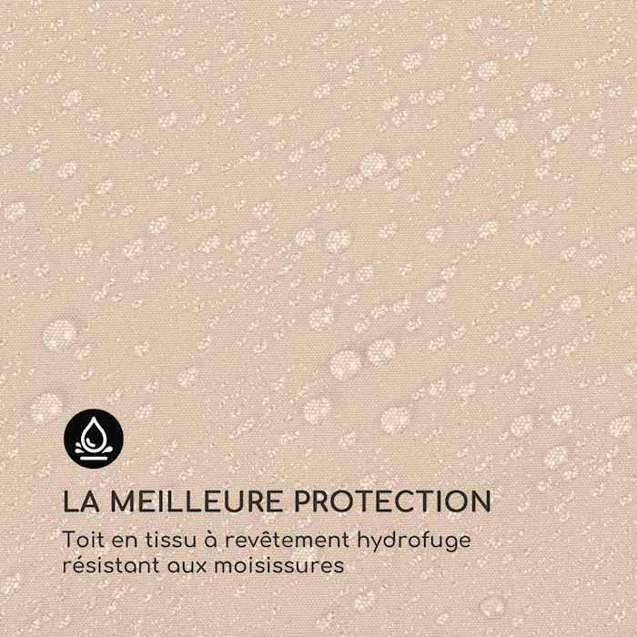 - Bien protégé : toit en toile avec un revêtement hydrofuge et résistant aux moisissures