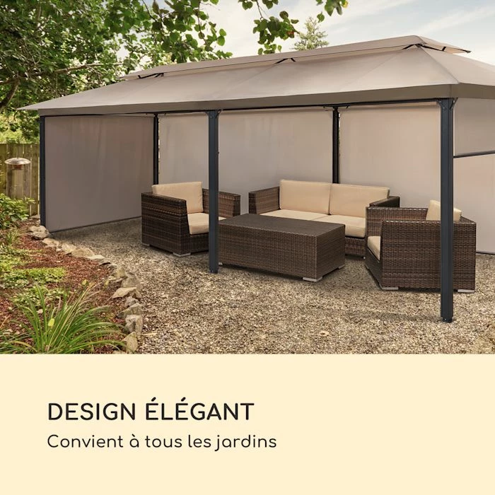 Profitez de l’été en plein air – quel que soit la météo ! Le pavillon de jardin blumfeldt Grandezza Cortina est à la fois lieu à l’ombre aéré et un refuge résistant aux intempéries.