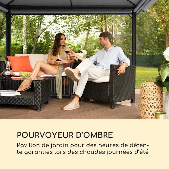 - Fournisseur d’ombre : le pavillon de jardin assure des heures de détente lors des chaudes journées d’été
