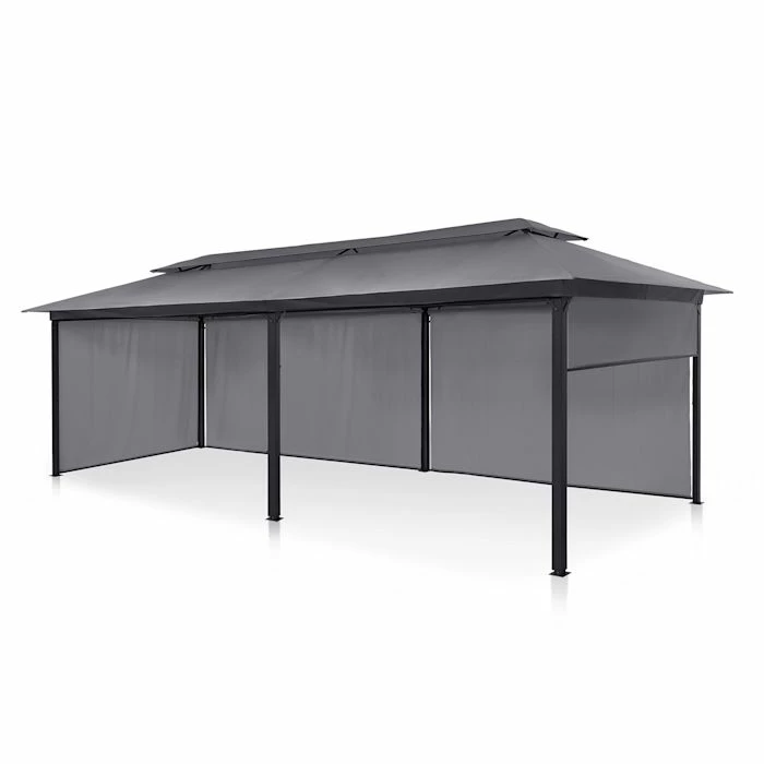Profitez de l’été en plein air – quel que soit la météo ! Le pavillon de jardin blumfeldt Grandezza Cortina est à la fois lieu à l’ombre aéré et un refuge résistant aux intempéries.