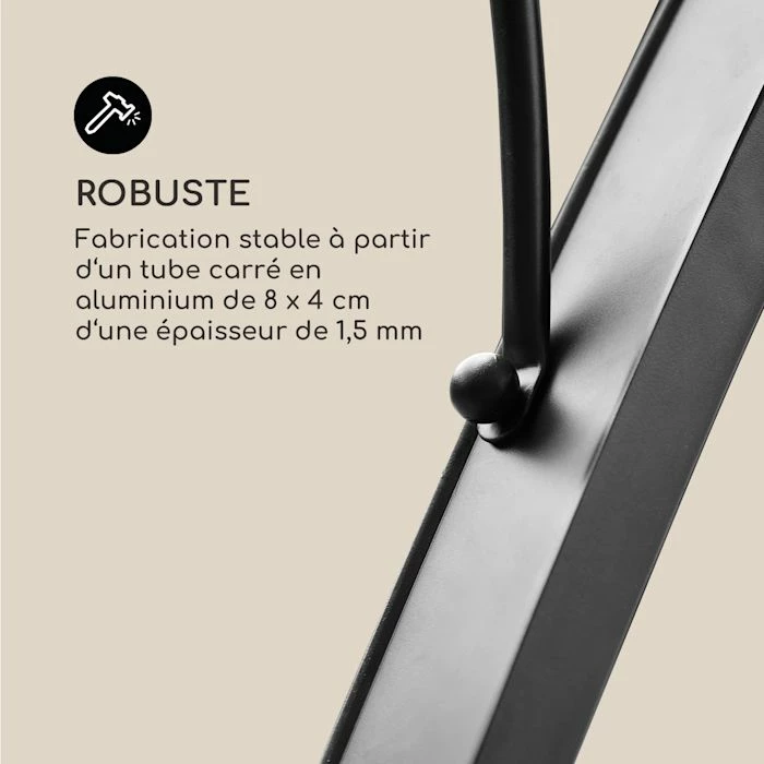- Robuste : fabrication stable en tubes d’aluminium de 8 x 4 cm pour une épaisseur de matériel de 1,5 mm