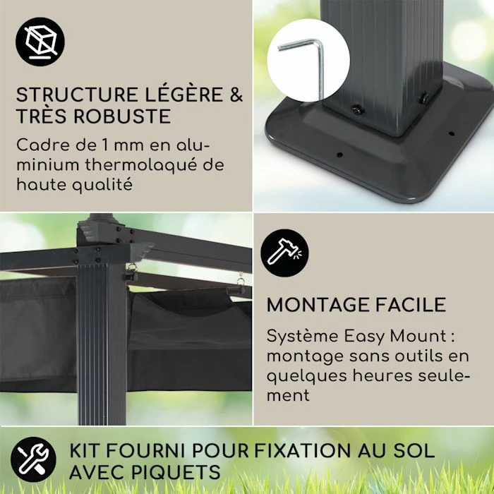 - Solide & stable : conception légère en tubes d’aluminium carrés de 10 x 10 cm et de 1,2 mm d’épaisseur