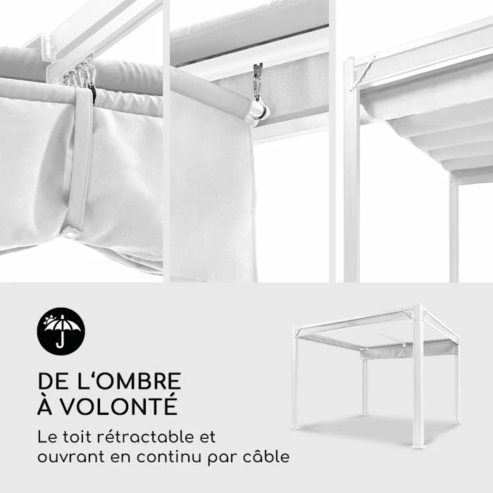 - Ombre à volonté : toit extensible et rétractable en continu par câble