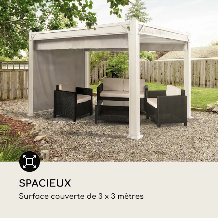 La pergola Blumfeldt Panthéon Cortina transforme votre terrasse ou coin salon en un temple de la détente ! Grâce à son design élégant, le pavillon s’intègre dans n’importe quel style de jardin.