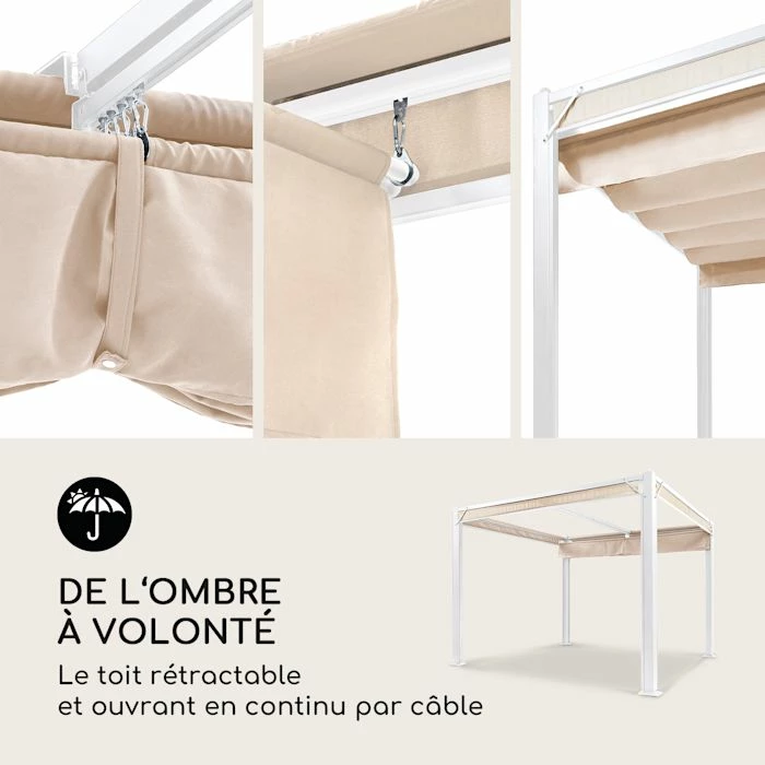 - Ombre à volonté : toit extensible et rétractable en continu par câble