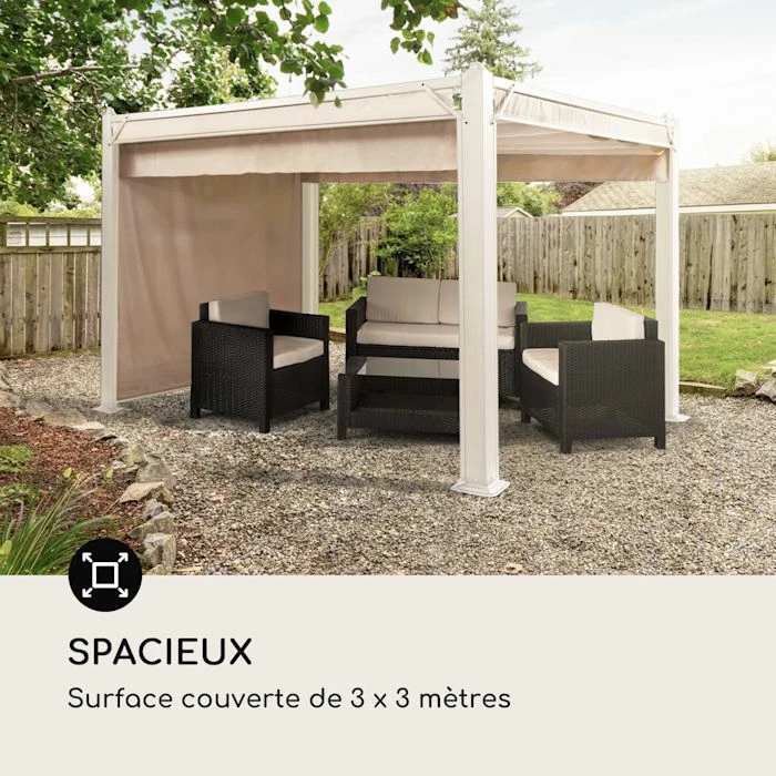 La pergola Blumfeldt Panthéon Cortina transforme votre terrasse ou coin salon en un temple de la détente ! Grâce à son design élégant, le pavillon s’intègre dans n’importe quel style de jardin.