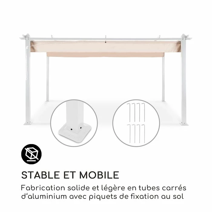 - Stable et mobile : structure solide et légère en tube carré en aluminium et piquets de fixation au sol