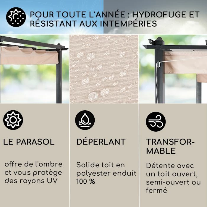 - Ensemble complet de pergola pour apporter de l’ombre à votre terrasse ou à vos coins salon à l’air libre