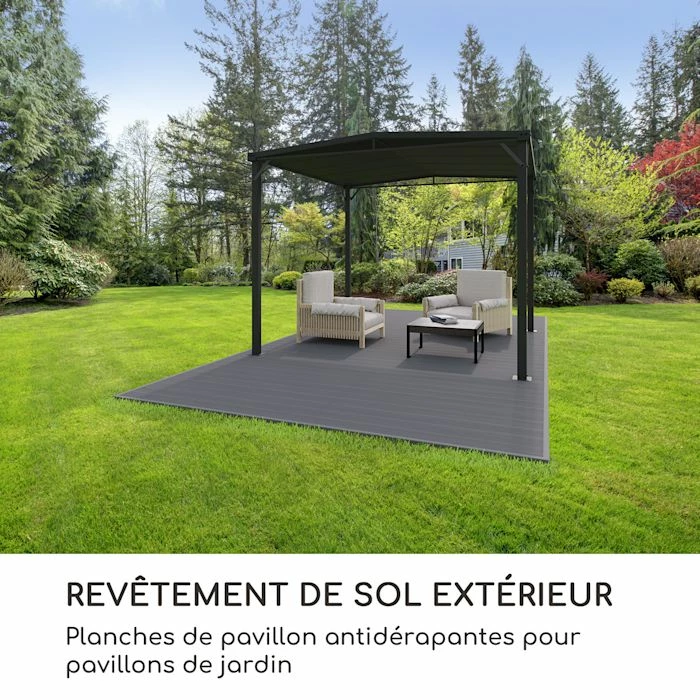 - RevĂȘtement de sol extĂ©rieur : planches antidĂ©rapantes pour pavillons de jardin